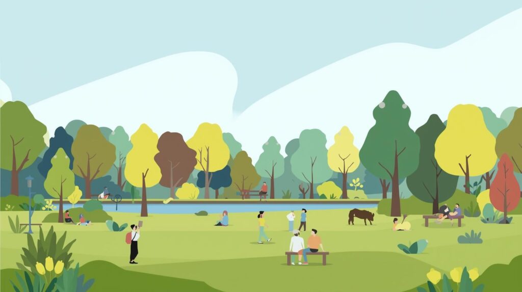 日光を浴びたり、公園や自然の中で過ごすことでセロトニン分泌を促し、気分改善や睡眠リズムの安定に効果があります。